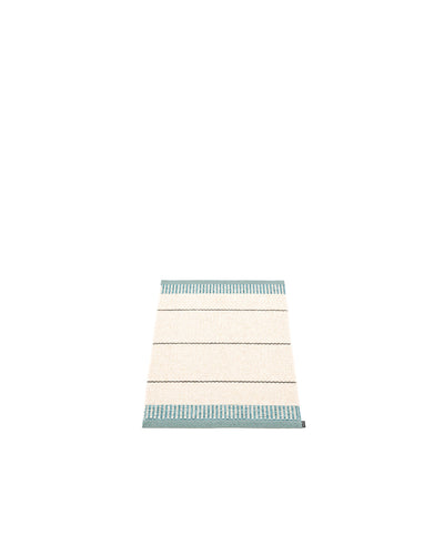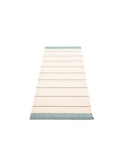 The BELLE Rugs are woven on a traditional loom using wooden shuttles. For indoor or outdoor use, the rugs are machine-washable and made from Swedish-manufactured certified PVC. Each rug features reinforced, welded edges for strength and durability.