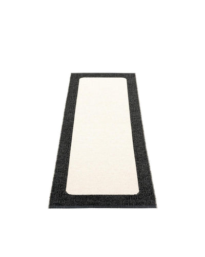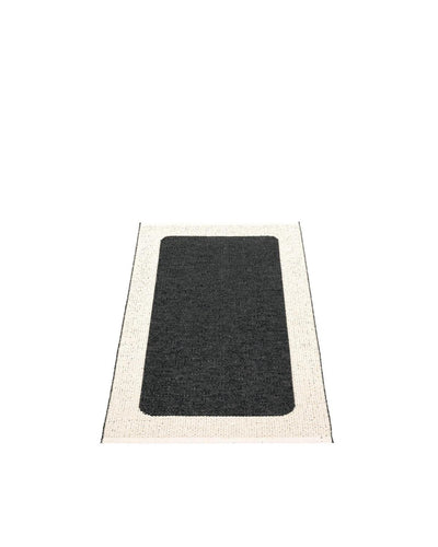 The Pappelina Rugs are woven on a traditional loom using wooden shuttles. For indoor or outdoor use, the rugs are reversible, machine-washable, and made from Swedish-manufactured certified PVC. Each rug features reinforced, welded edges for strength and durability.