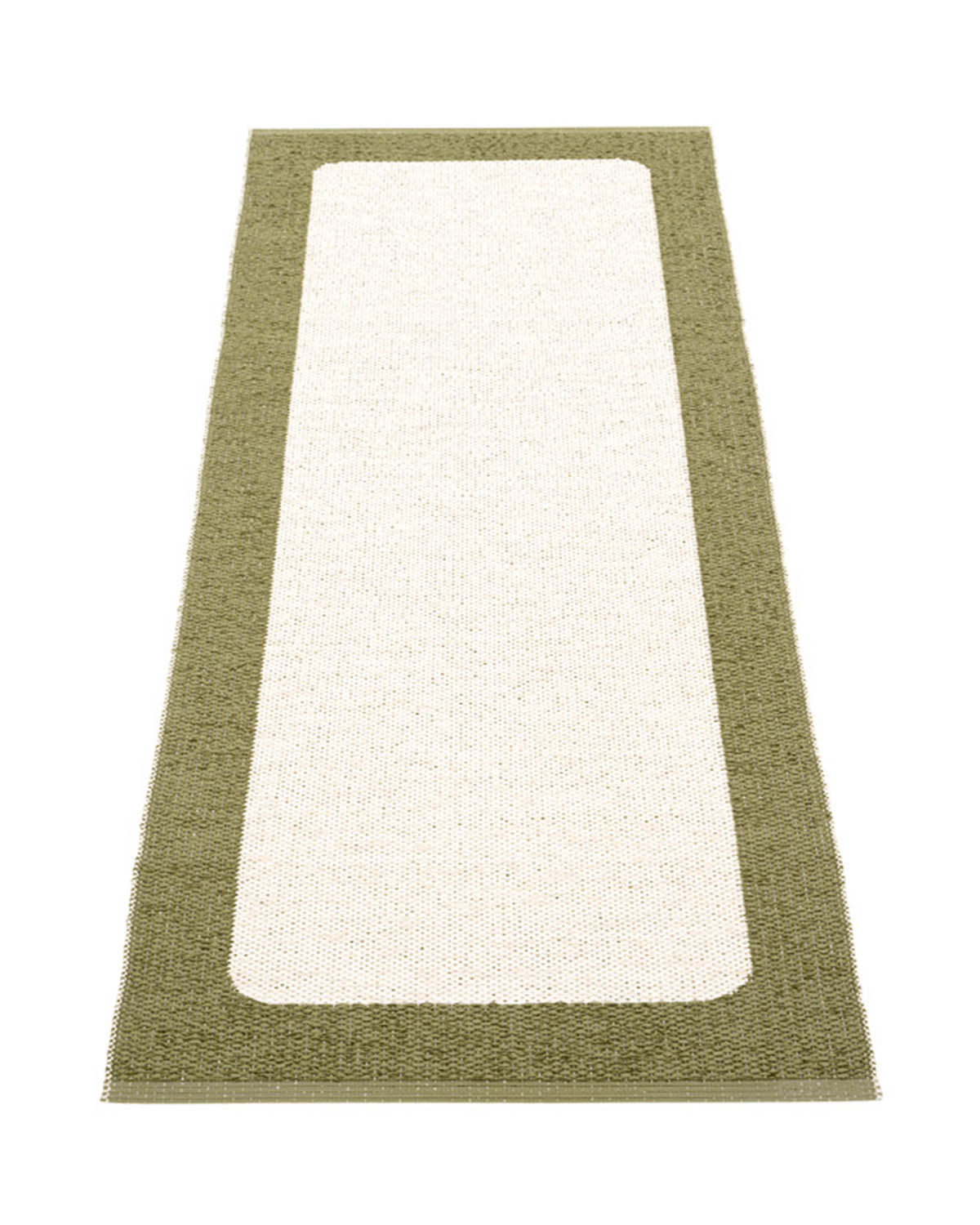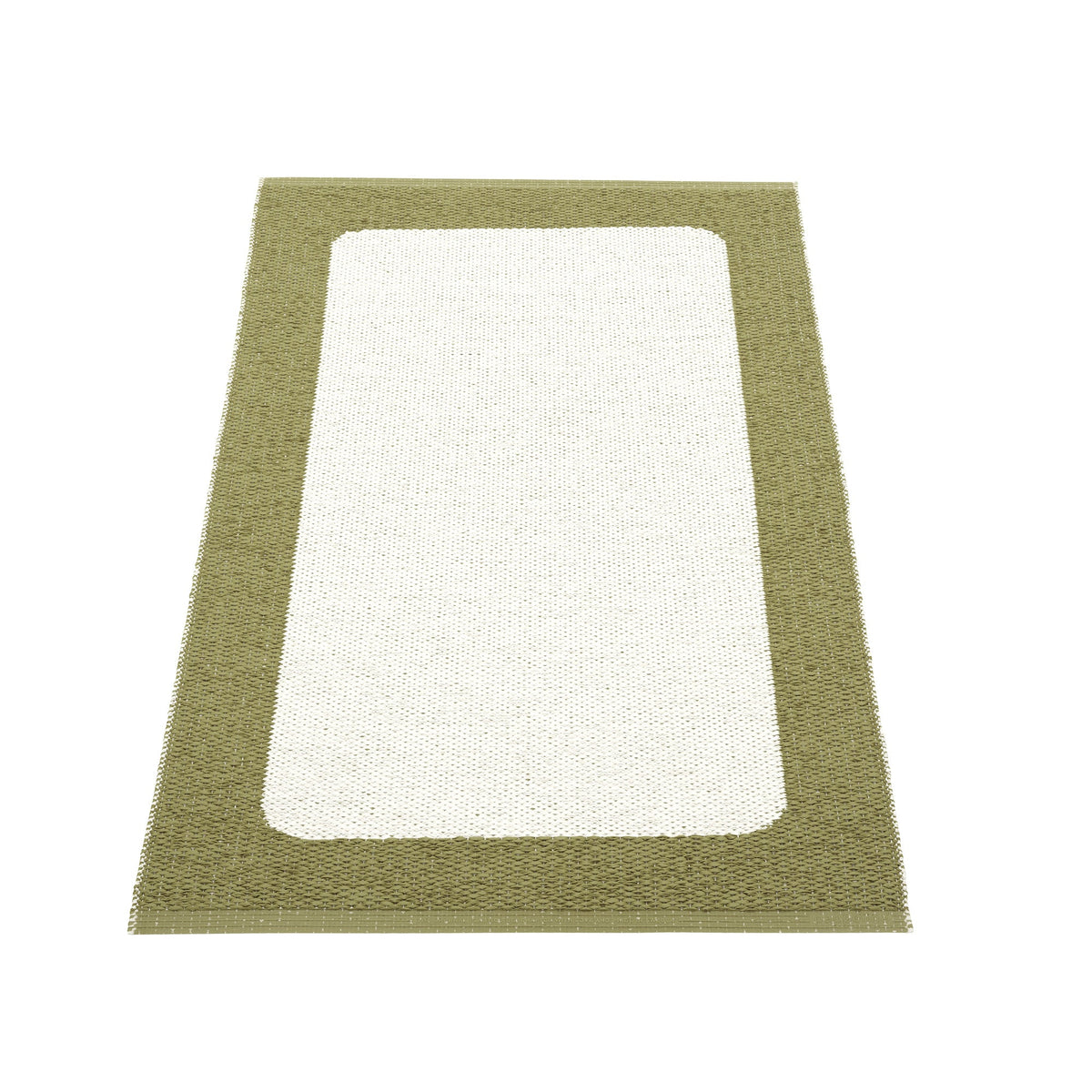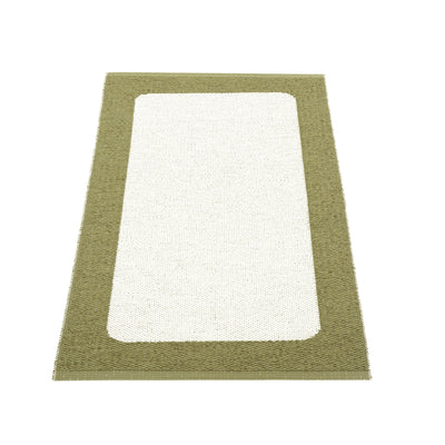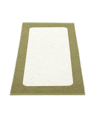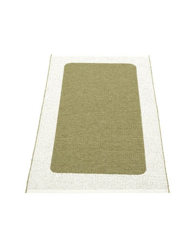 The Pappelina Rugs are woven on a traditional loom using wooden shuttles. For indoor or outdoor use, the rugs are reversible, machine-washable, and made from Swedish-manufactured certified PVC. Each rug features reinforced, welded edges for strength and durability.