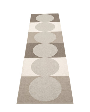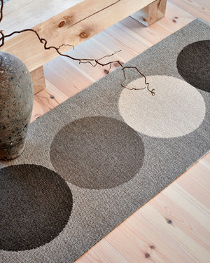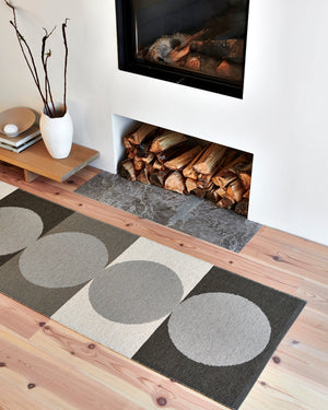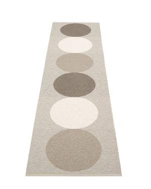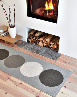 The Pappelina Rugs are woven on a traditional loom using wooden shuttles. For indoor or outdoor use, the rugs are machine-washable and made from Swedish-manufactured certified PVC. Each rug features reinforced, welded edges for strength and durability.