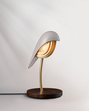 BIRD is a dimmable LED table lamp with sleek lines and a touch sensor at the base. Short taps yield 3 brightness levels while long presses trigger gradual illumination. This is a great desk lamp or side table.