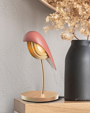 BIRD is a dimmable LED table lamp with sleek lines and a touch sensor at the base. Short taps yield 3 brightness levels while long presses trigger gradual illumination. This is a great desk lamp or side table.
