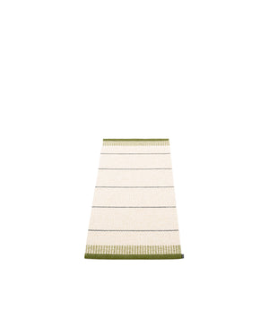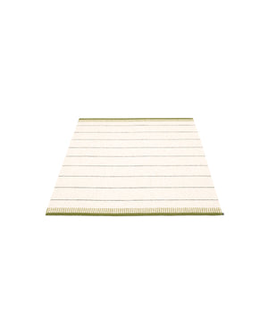 The BELLE Rugs are woven on a traditional loom using wooden shuttles. For indoor or outdoor use, the rugs are machine-washable and made from Swedish-manufactured certified PVC. Each rug features reinforced, welded edges for strength and durability.