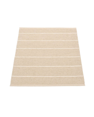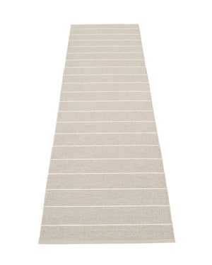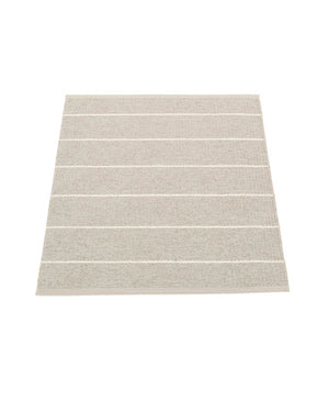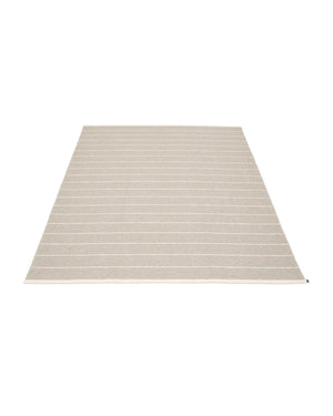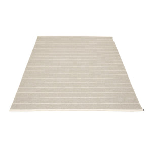 The Pappelina Rugs are woven on a traditional loom using wooden shuttles. For indoor or outdoor use, the rugs are reversible, machine-washable, and made from Swedish-manufactured certified PVC. Each rug features reinforced, welded edges for strength and durability.