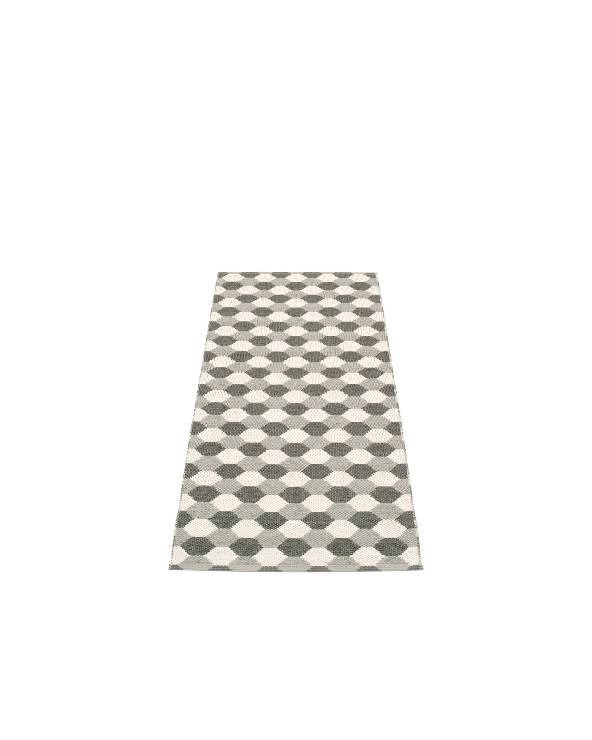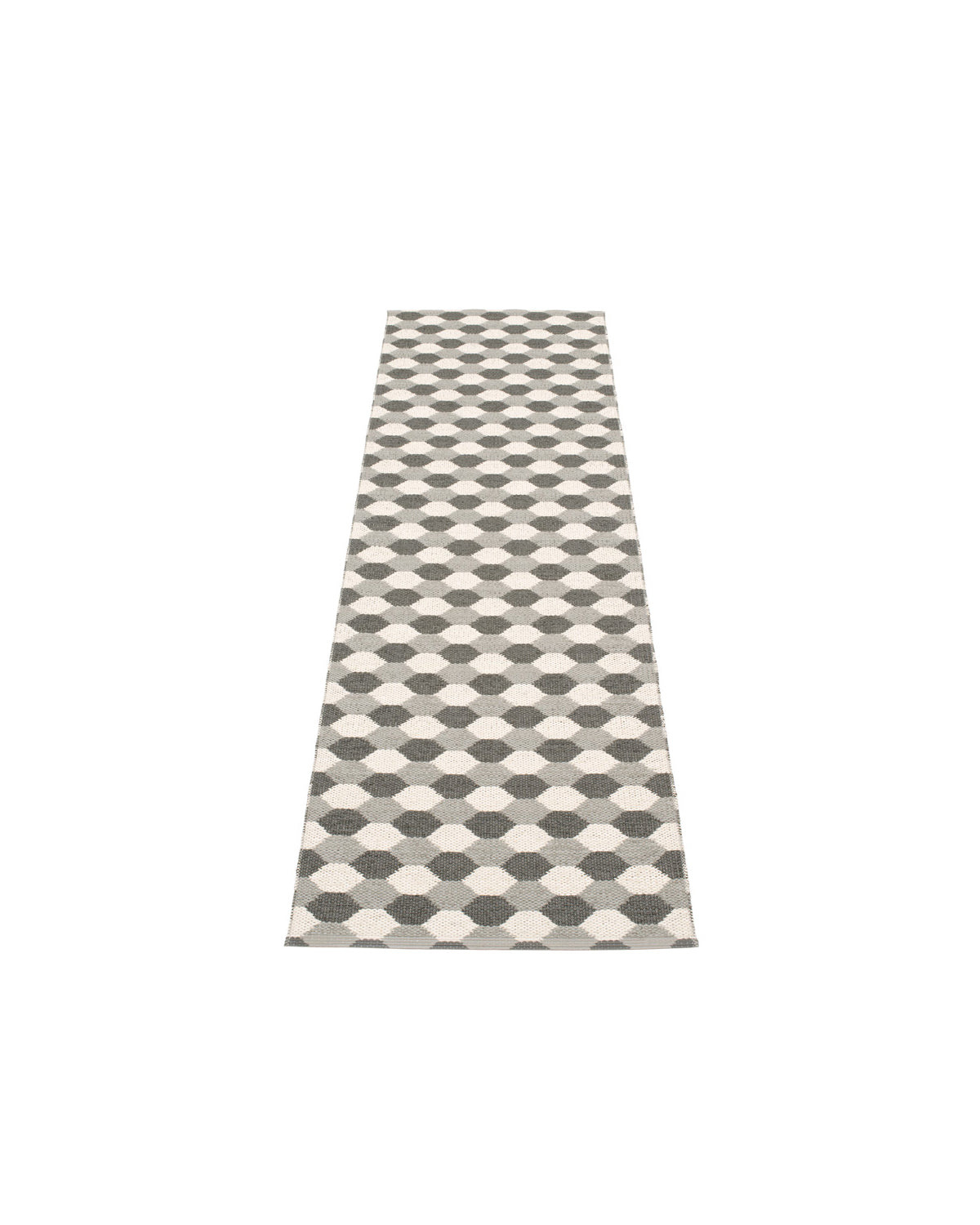 The Pappelina Rugs are woven on a traditional loom using wooden shuttles. For indoor or outdoor use, the rugs are reversible, machine-washable, and made from Swedish-manufactured certified PVC. Each rug features reinforced, welded edges for strength and durability.
