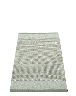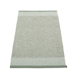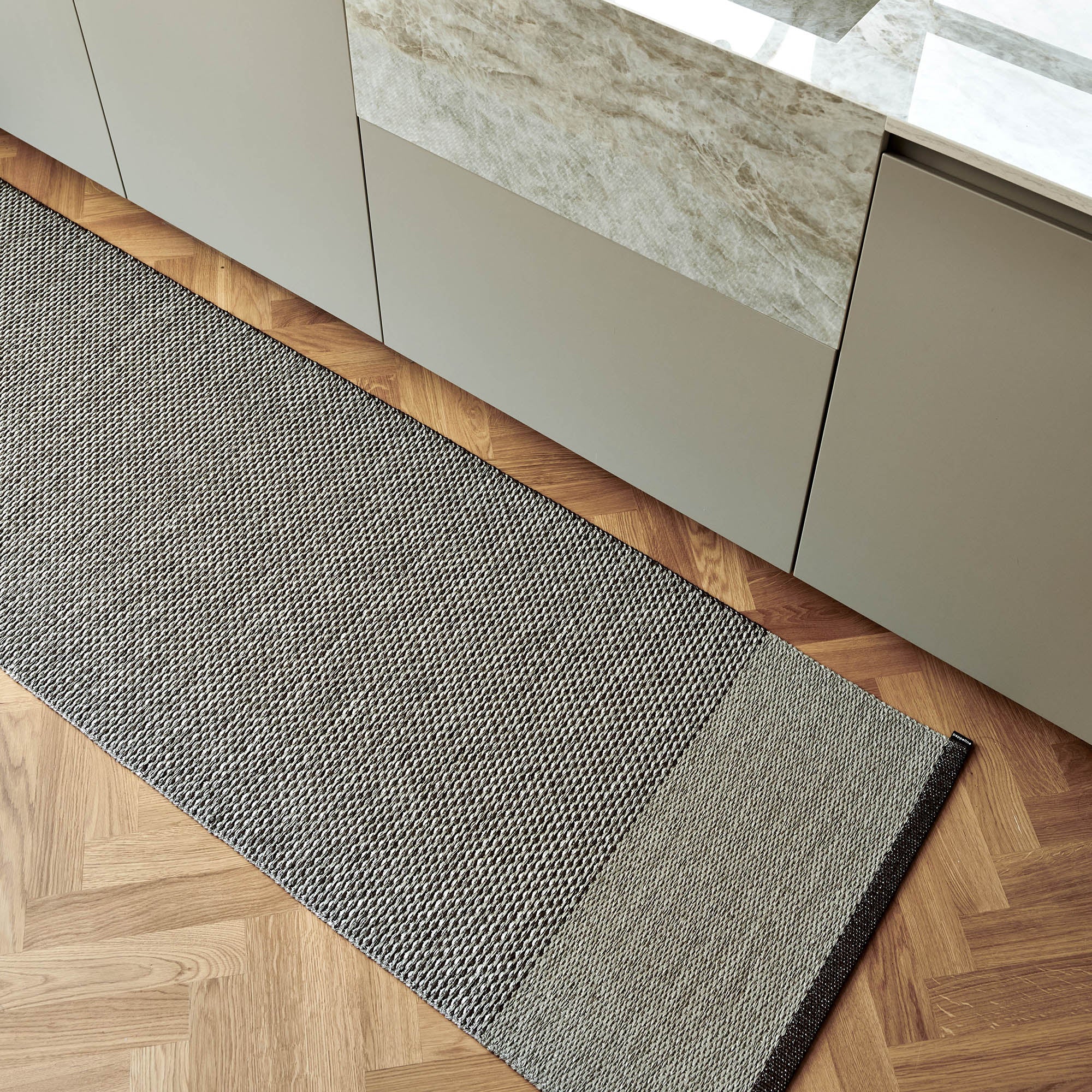The Pappelina Rugs are woven on a traditional loom using wooden shuttles. For indoor or outdoor use, the rugs are reversible, machine-washable, and made from Swedish-manufactured certified PVC. Each rug features reinforced, welded edges for strength and durability.