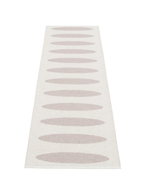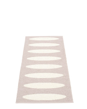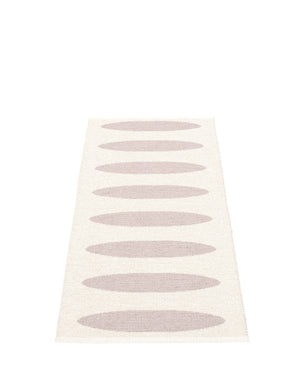 The ELLA Rugs are woven on a traditional loom using wooden shuttles. For indoor or outdoor use, the rugs are reversible, machine-washable, and made from Swedish-manufactured certified PVC. Each rug features reinforced, welded edges for strength and durability.