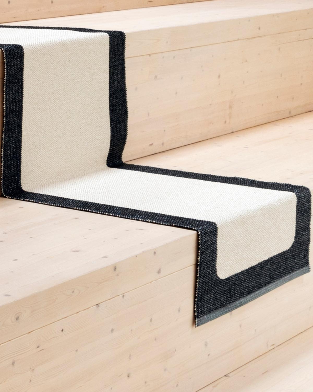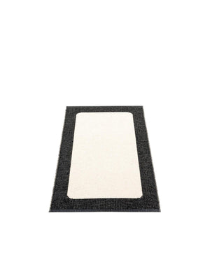 The Pappelina Rugs are woven on a traditional loom using wooden shuttles. For indoor or outdoor use, the rugs are reversible, machine-washable, and made from Swedish-manufactured certified PVC. Each rug features reinforced, welded edges for strength and durability.
