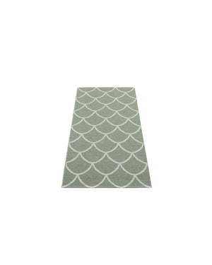 The Pappelina Rugs are woven on a traditional loom using wooden shuttles. For indoor or outdoor use, the rugs are reversible, machine-washable, and made from Swedish-manufactured certified PVC. Each rug features reinforced, welded edges for strength and durability.
