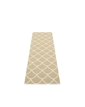 The KOTTE Rugs are woven on a traditional loom using wooden shuttles. For indoor or outdoor use, the rugs are reversible, machine-washable, and made from Swedish-manufactured certified PVC. Each rug features reinforced, welded edges for strength and durability.