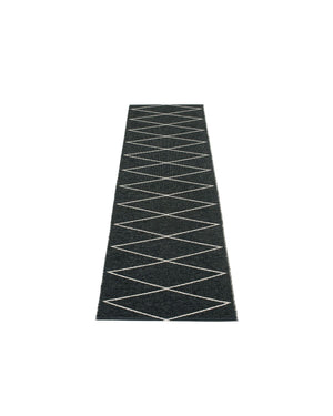 The MAX Rugs are woven on a traditional loom using wooden shuttles. For indoor or outdoor use, the rugs are reversible, machine-washable, and made from Swedish-manufactured certified PVC. Each rug features reinforced, welded edges for strength and durability.