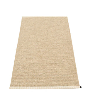 The Pappelina Rugs are woven on a traditional loom using wooden shuttles. For indoor or outdoor use, the rugs are machine-washable and made from Swedish-manufactured certified PVC. Each rug features reinforced, welded edges for strength and durability.