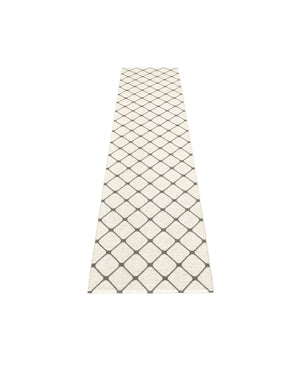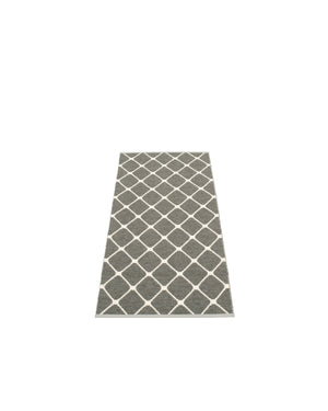 The REX Rugs are woven on a traditional loom using wooden shuttles. For indoor or outdoor use, the rugs are reversible, machine-washable, and made from Swedish-manufactured certified PVC. Each rug features reinforced, welded edges for strength and durability.