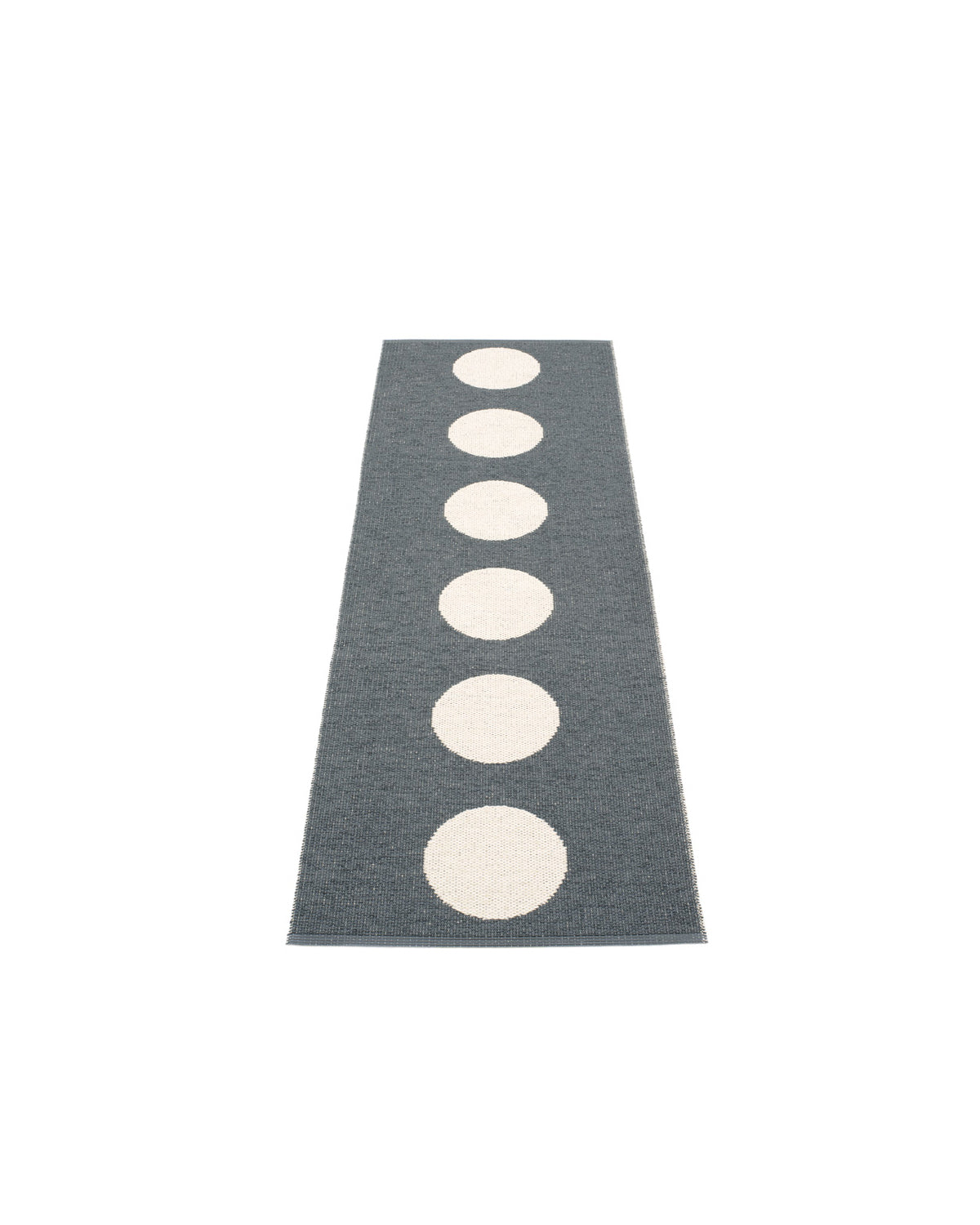 The VERA Rugs are woven on a traditional loom using wooden shuttles. For indoor or outdoor use, the rugs are reversible, machine-washable, and made from Swedish-manufactured certified PVC. Each rug features reinforced, welded edges for strength and durability.