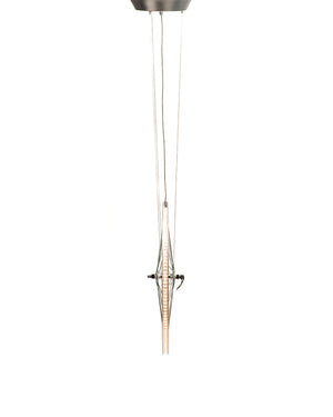 Fixing to the ceiling with 3 steel cables, adjustable in height (stroke +/- 75 cm), anchored to a lacquered aluminum stud, Ledstrip driver on board.