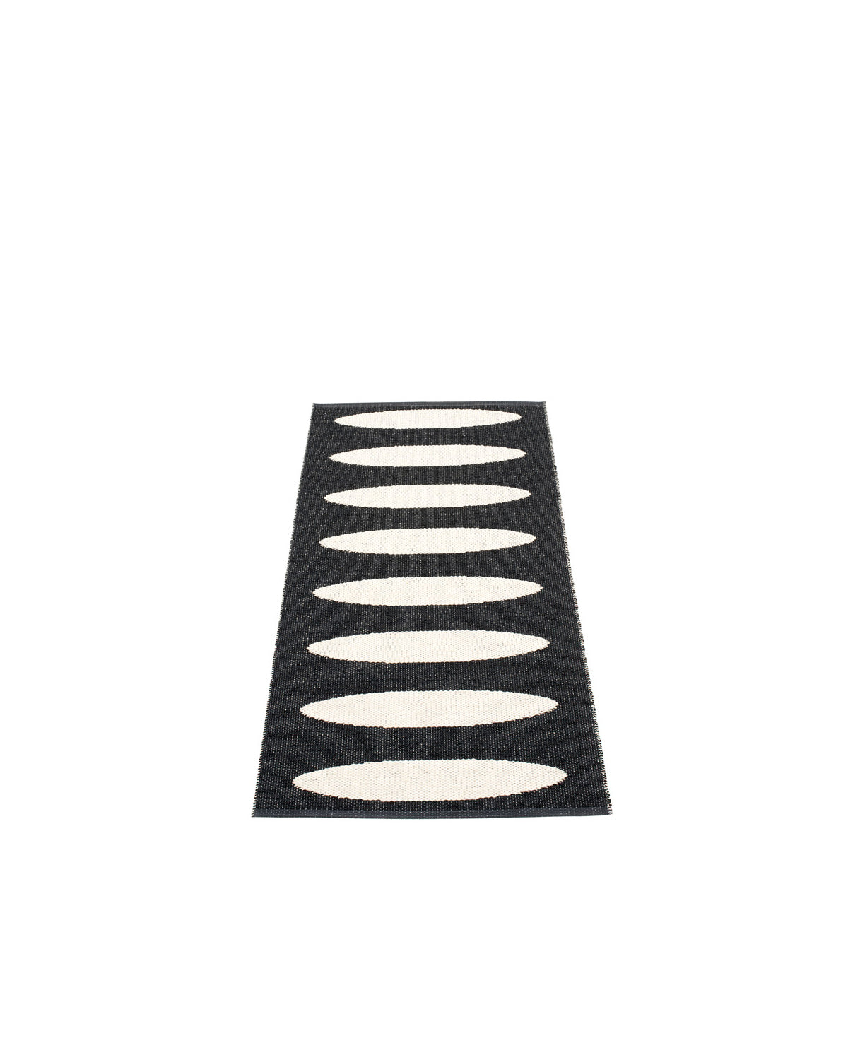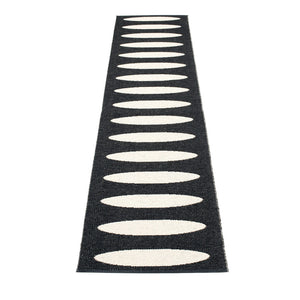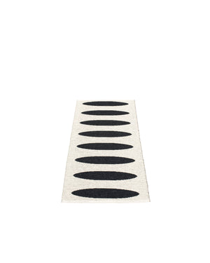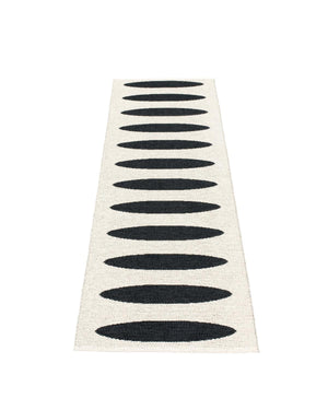 The ELLA Rugs are woven on a traditional loom using wooden shuttles. For indoor or outdoor use, the rugs are reversible, machine-washable, and made from Swedish-manufactured certified PVC. Each rug features reinforced, welded edges for strength and durability.