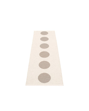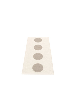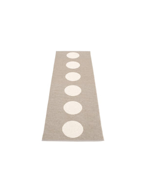 The VERA Rugs are woven on a traditional loom using wooden shuttles. For indoor or outdoor use, the rugs are reversible, machine-washable, and made from Swedish-manufactured certified PVC. Each rug features reinforced, welded edges for strength and durability.