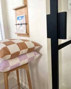 The Checkerboard Cushion  is jacquard-woven from 100% New Zealand wool. A premium decoration piece that is bold, cheerful and ready to give you some extra comfort.