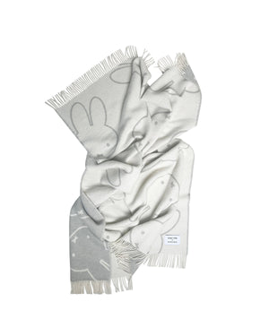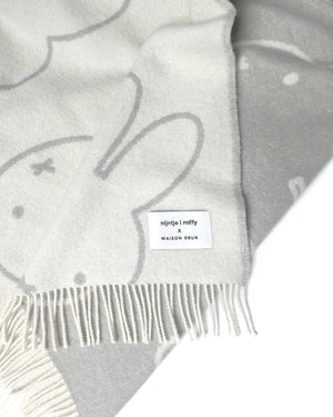 The Miffy Blanket Cloud is jacquard-woven from 100% New Zealand wool with fringes on the short sides. A thick premium blanket that is mirror-inverted on the opposite side. The reversible pattern allows you to swap between two different moods. Measuring 4.3 x 6.6 ft, it is big enough to keep two warm. An instant upgrade to the living room.