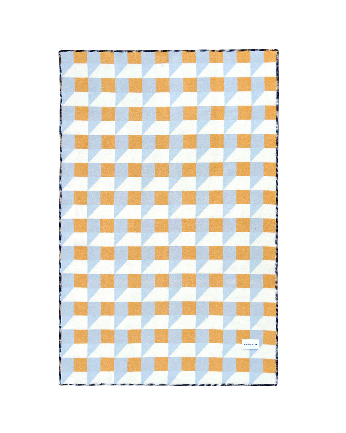 Blanket CUBICS Blue / Honey Print 4.25 x 6.5 ft