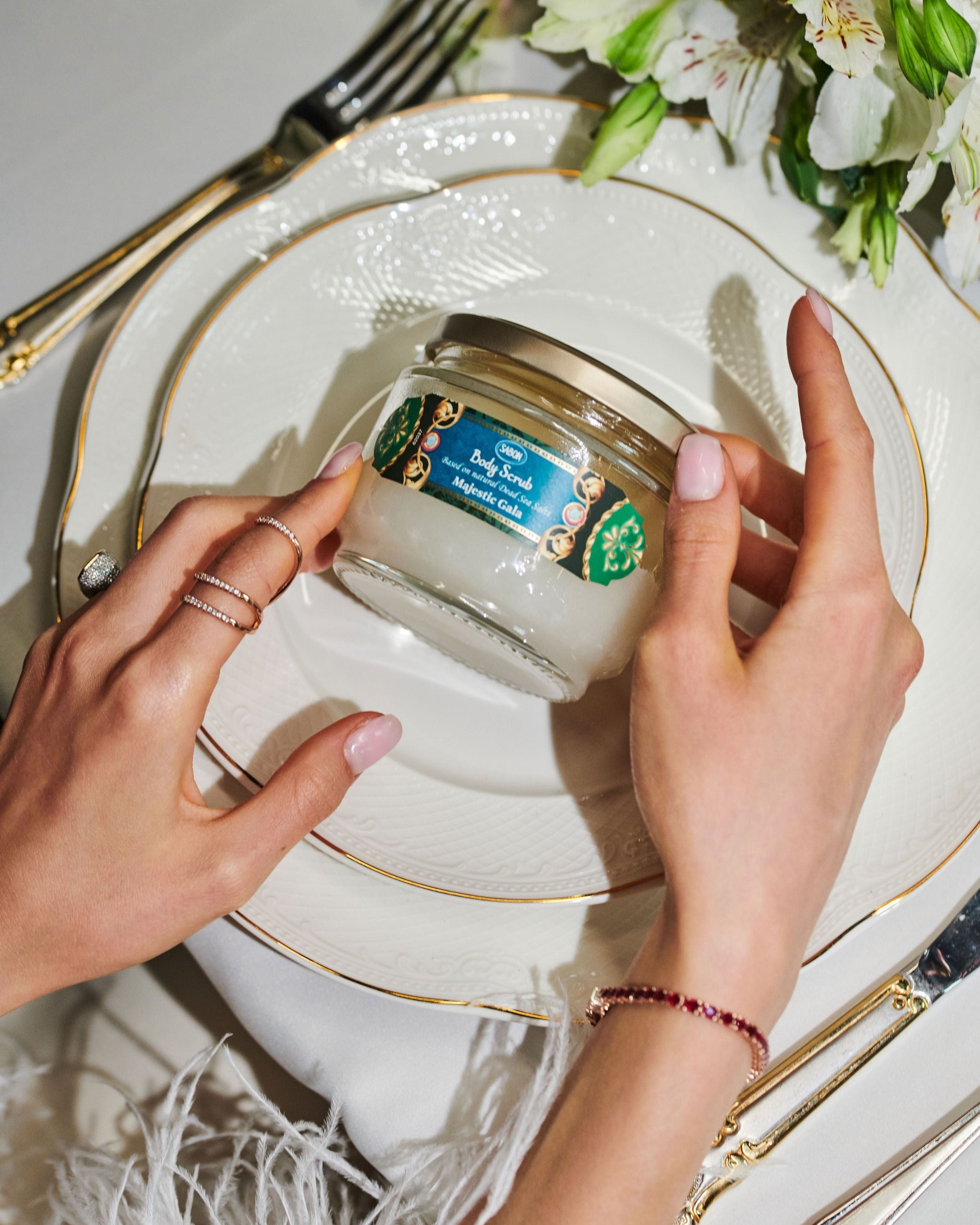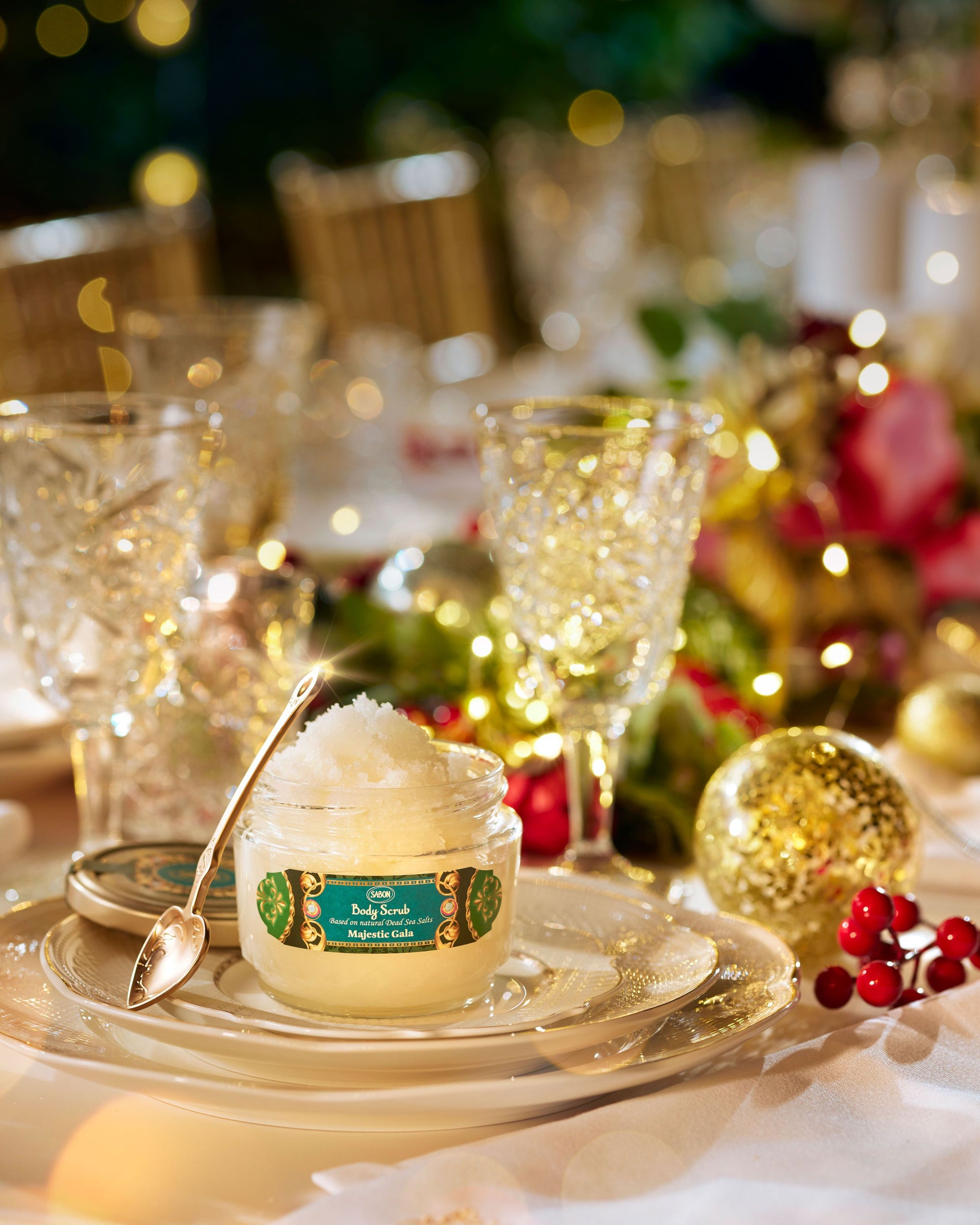 Experience Sabon’s iconic salt-in-oil scrub reimagined for the Majestic Gala. Infused with Dead Sea salts and organic oils, this festive edition gently exfoliates, nourishes, and restores your skin’s glow—an indulgent ritual worthy of celebration.