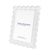 Details: Clear lucite on blue scalloped base, built in magnets for easy assembly, kickstand orients the frame vertically or horizontally.