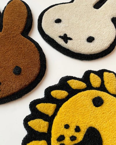 The lion wall rug is part of the series of miniature miffy rugs made of 100% New ZealandJust like the floor rugs, the mini versions are hand-tufted in three different levels of pile heights for a 3D texture.