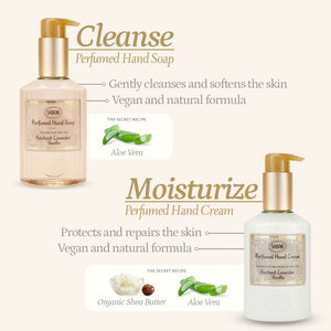 Elevate your daily hand care routine with the perfect pampering duo, designed to cleanse, nourish, and envelop your hands in the rich, soothing, and elegantly balanced scent of Patchouli Lavender Vanilla.