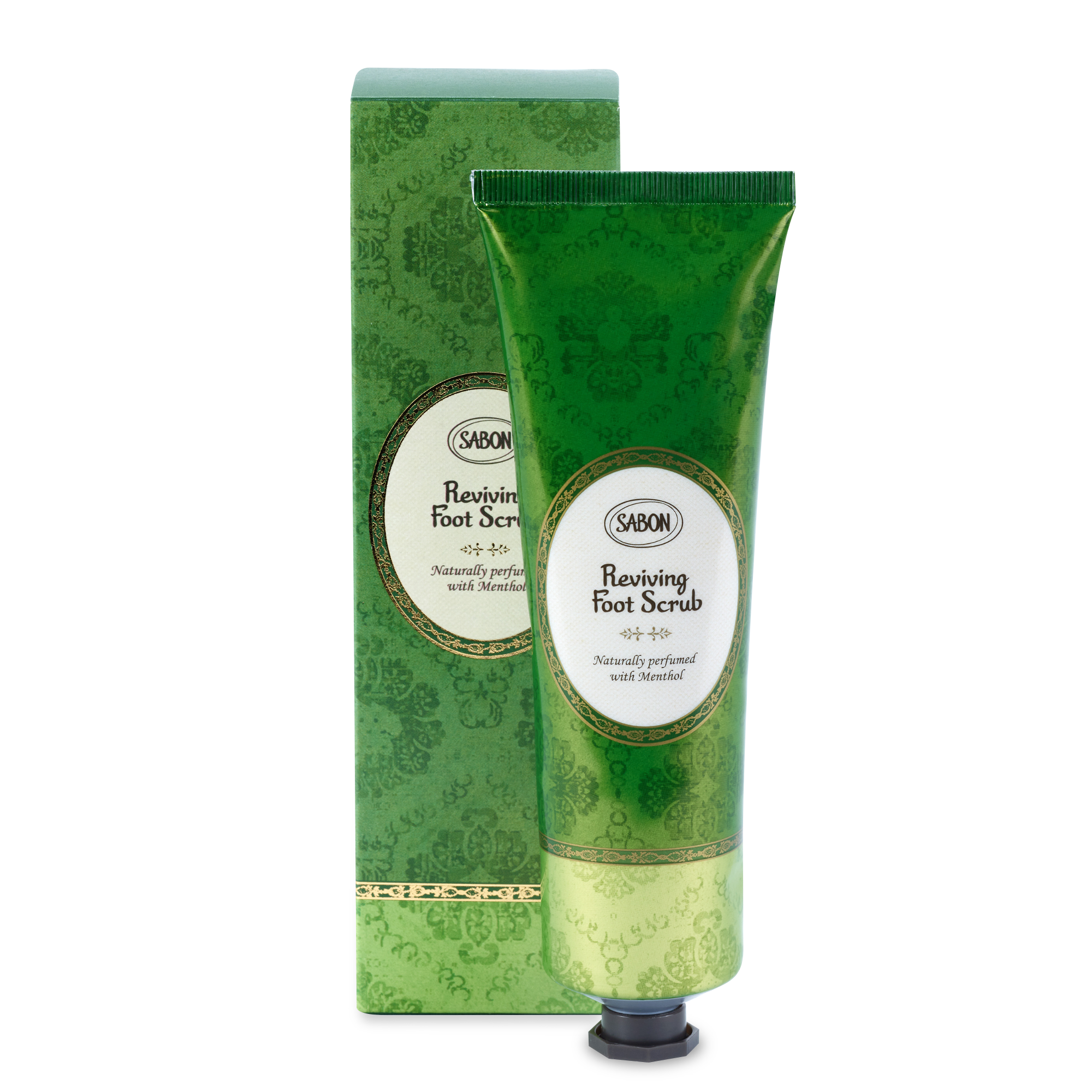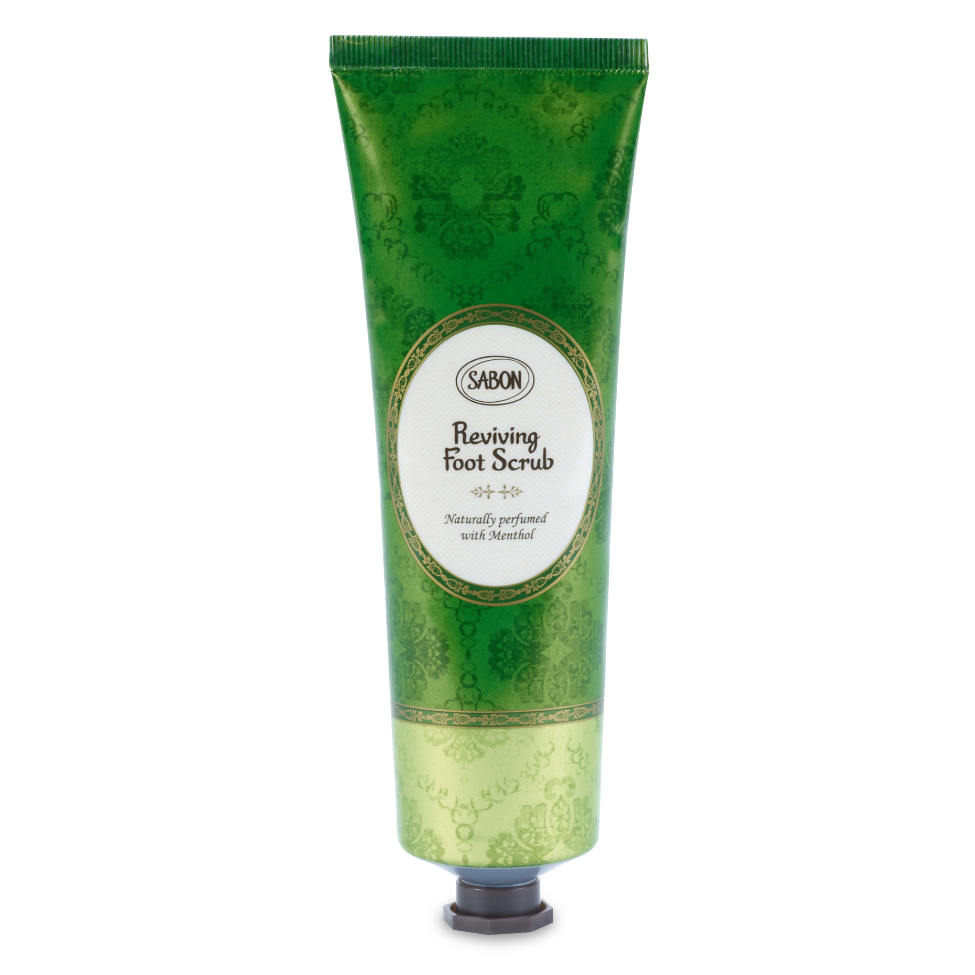 Discover the SABON Reviving Foot Scrub, formulated with menthol crystals and exfoliating pumice grains to help delicately smooth rough skin. Massage onto damp skin for baby-soft results, leaving feet feeling cool and refreshed.