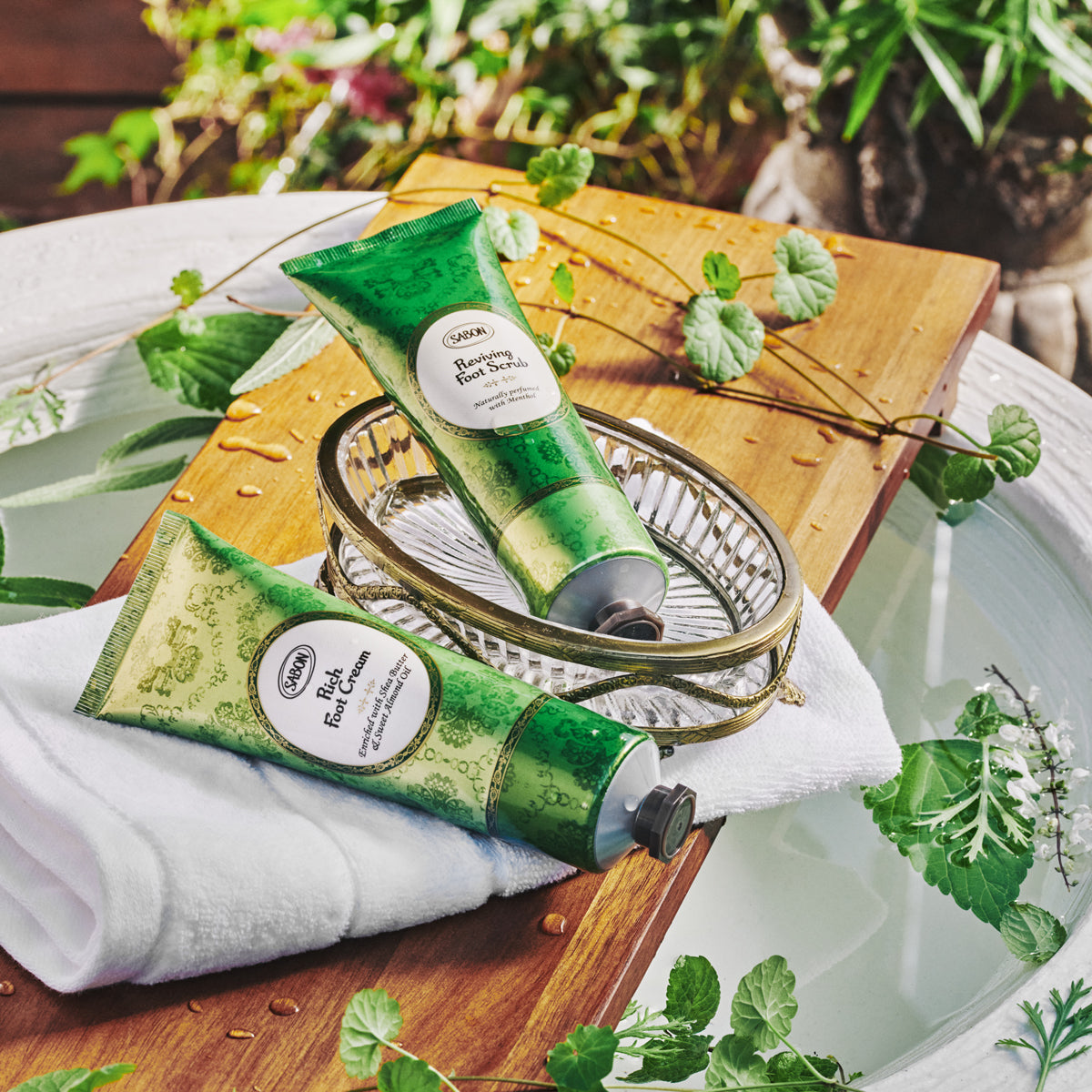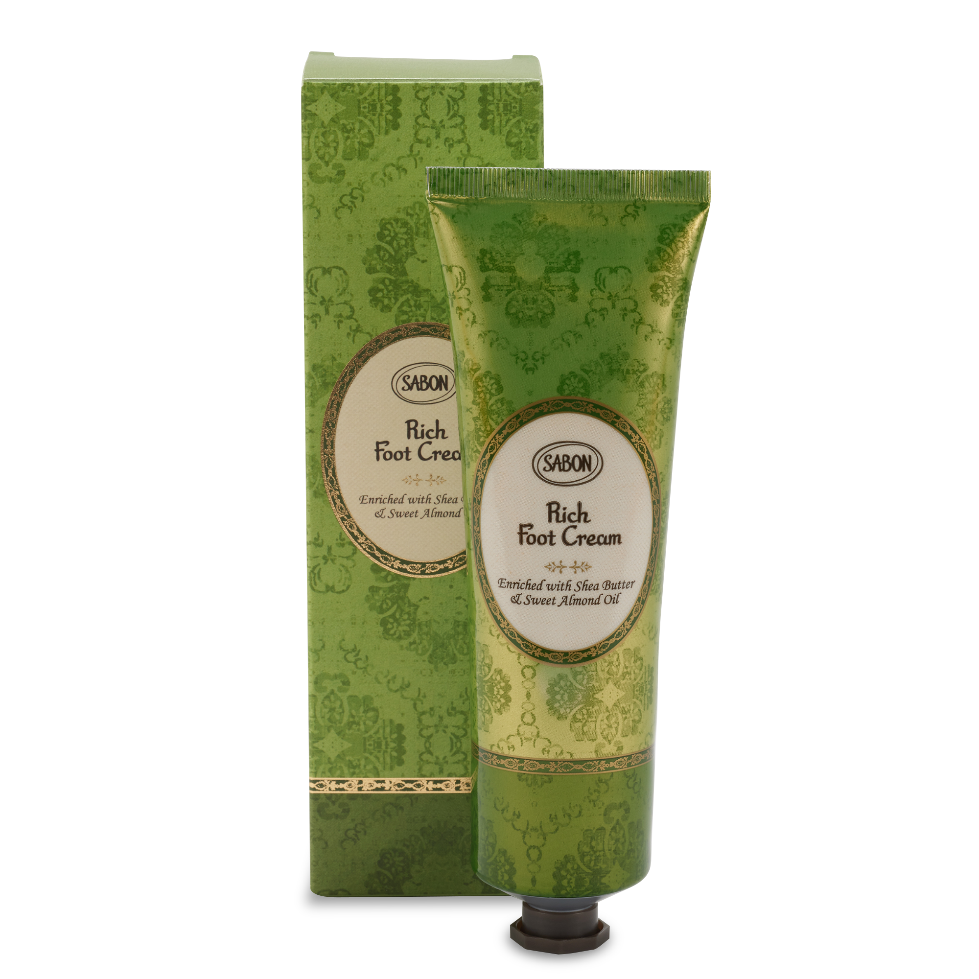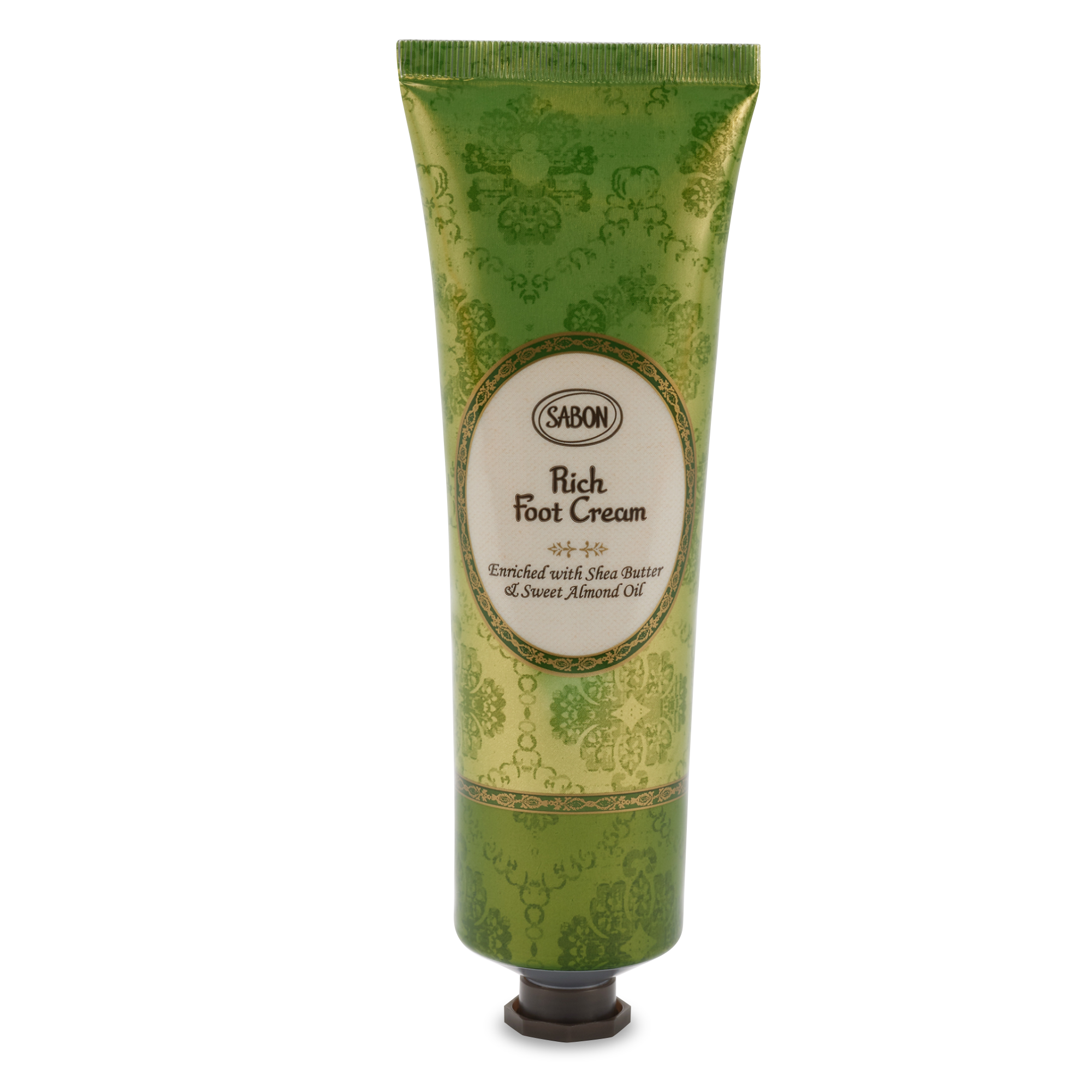 Pamper your feet with SABON's Rich Foot Cream. Enriched with Shea Butter and Sweet Almond Oil, this luxuriously textured cream repairs, nourishes, and hydrates skin, leaving your feet feeling silky and supple.