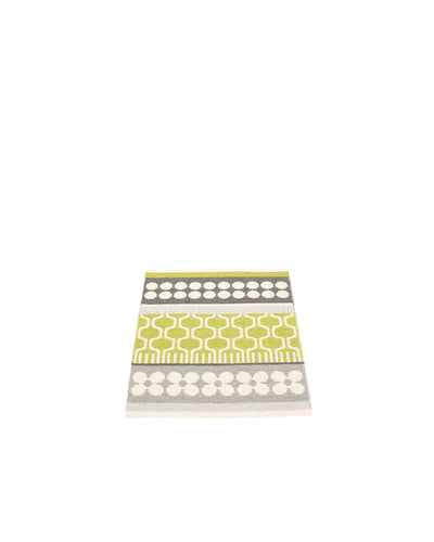 The ASTA Rugs are woven on a traditional loom using wooden shuttles. For indoor or outdoor use, the rugs are reversible, machine-washable, and made from Swedish-manufactured certified PVC. Each rug features reinforced, welded edges for strength and durability.