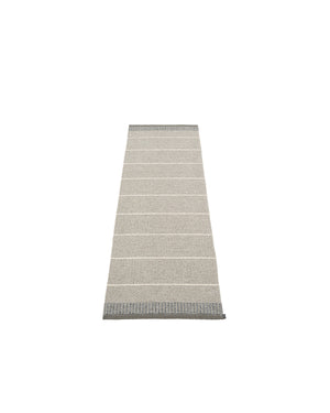 The BELLE Rugs are woven on a traditional loom using wooden shuttles. For indoor or outdoor use, the rugs are machine-washable and made from Swedish-manufactured certified PVC. Each rug features reinforced, welded edges for strength and durability.