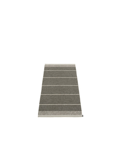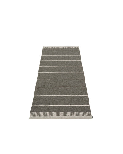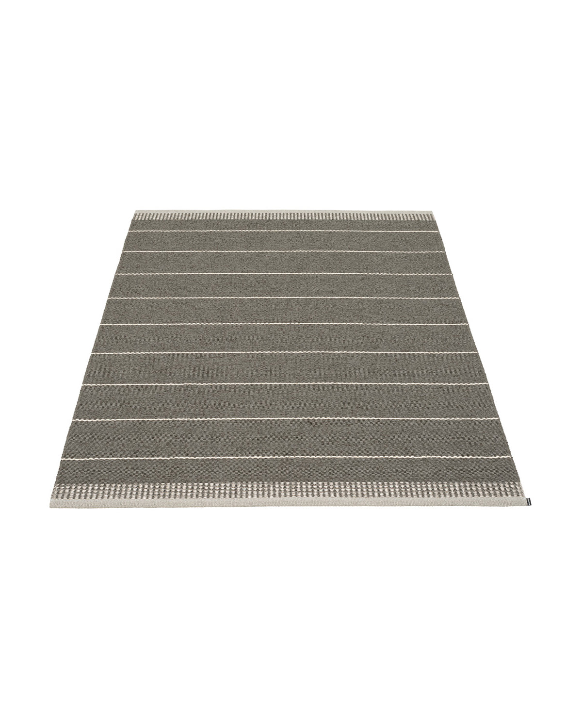 The BELLE Rugs are woven on a traditional loom using wooden shuttles. For indoor or outdoor use, the rugs are machine-washable and made from Swedish-manufactured certified PVC. Each rug features reinforced, welded edges for strength and durability.