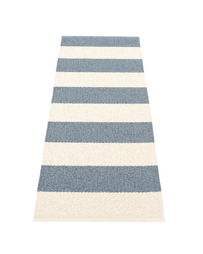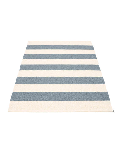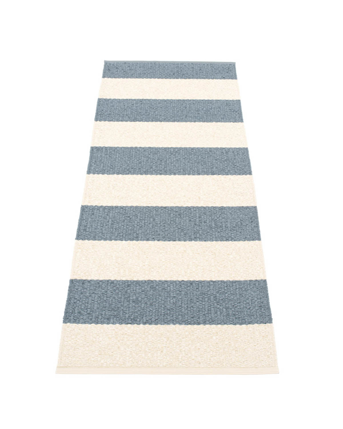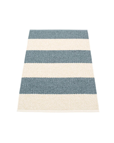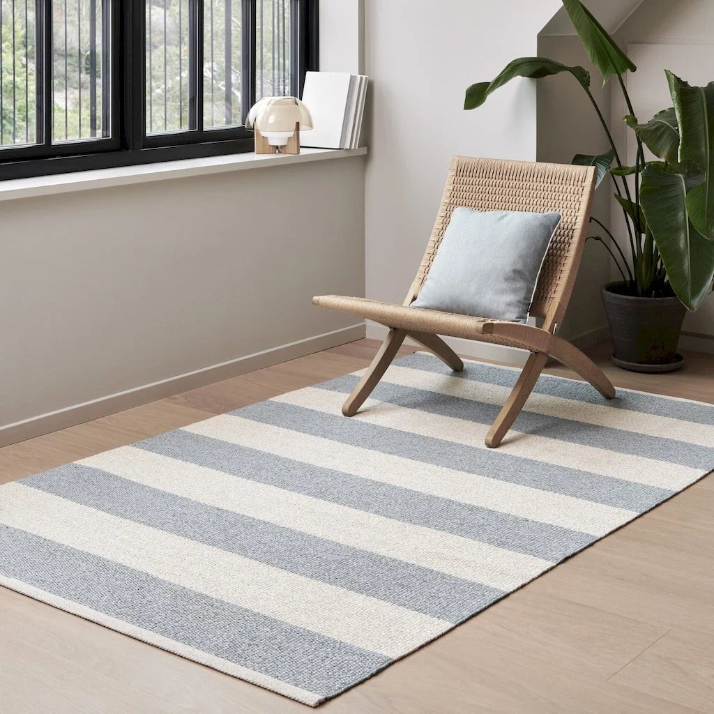 The BOB Rugs are woven on a traditional loom using wooden shuttles. For indoor or outdoor use, the rugs are machine-washable and made from Swedish-manufactured certified PVC. Each rug features reinforced, welded edges for strength and durability.