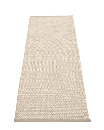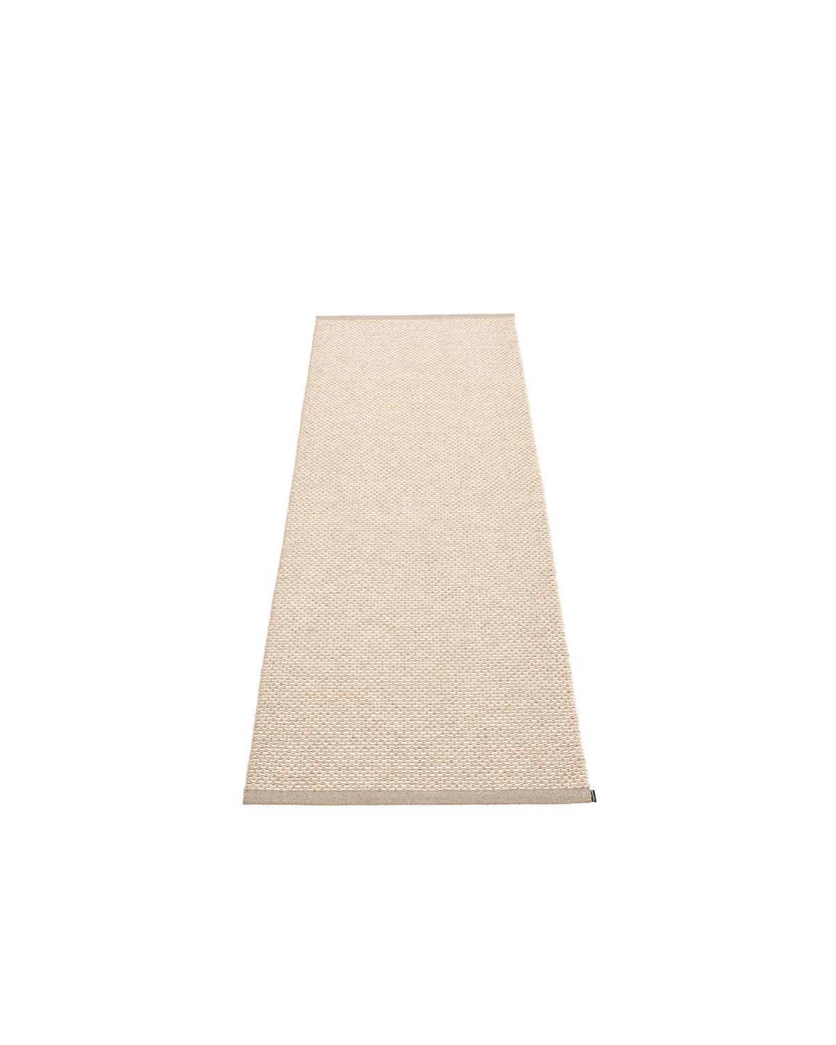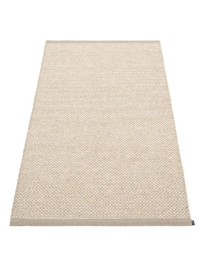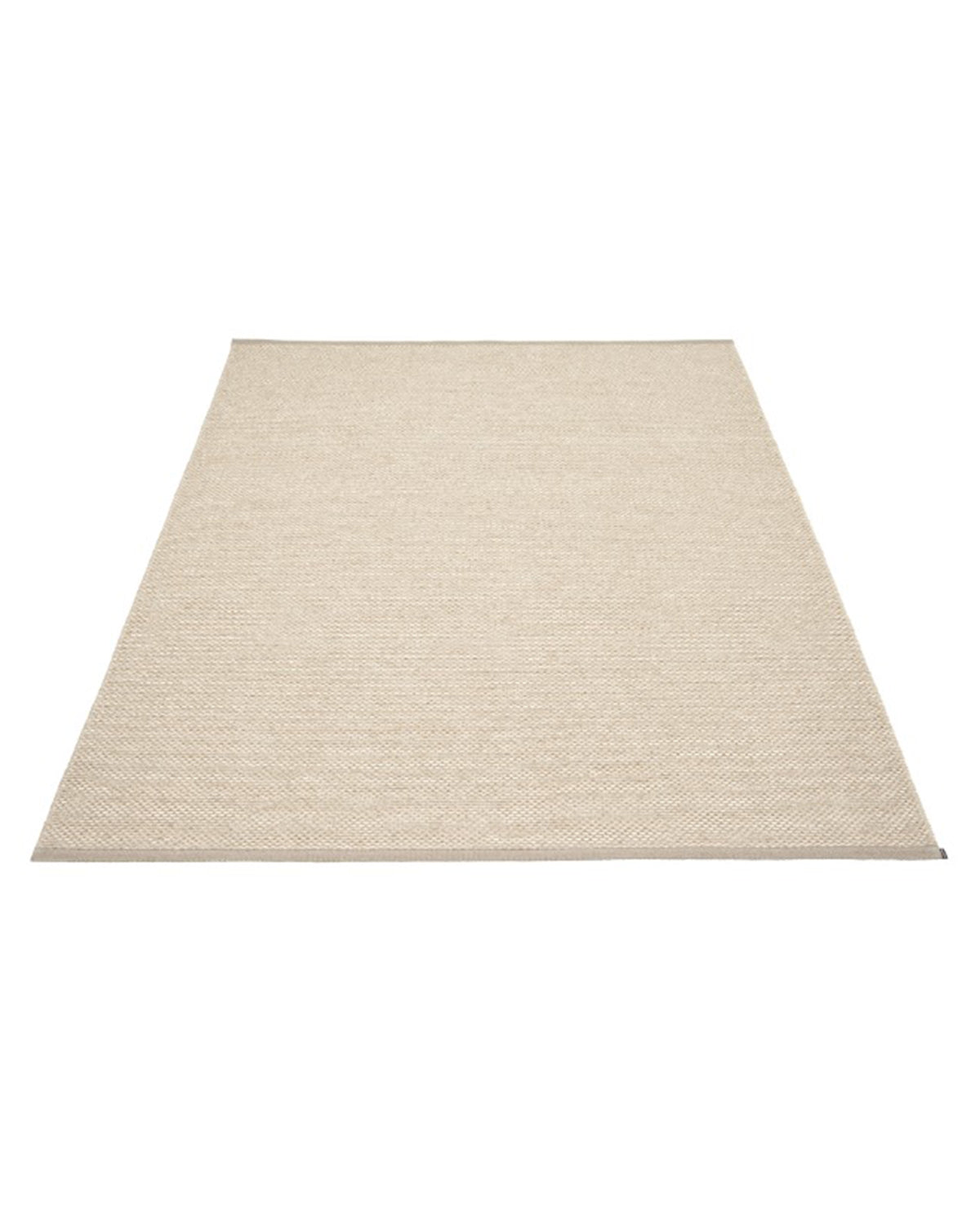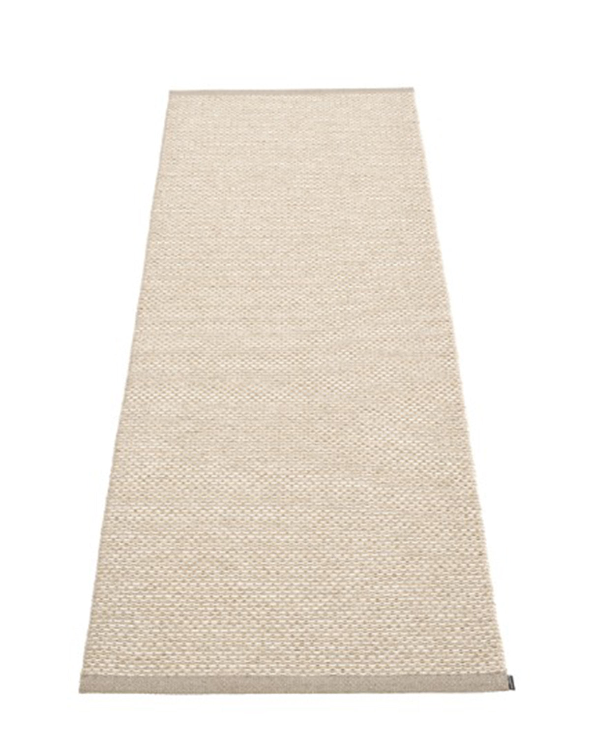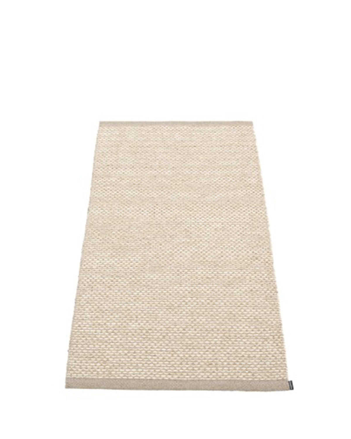 The EFFI Rugs are woven on a traditional loom using wooden shuttles. For indoor or outdoor use, the rugs are machine-washable, and made from Swedish-manufactured certified PVC. Each rug features reinforced, welded edges for strength and durability.