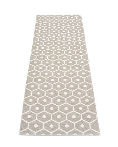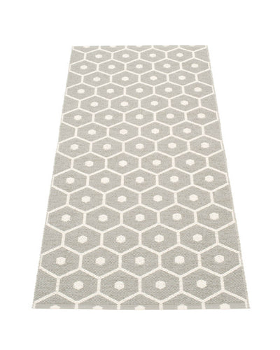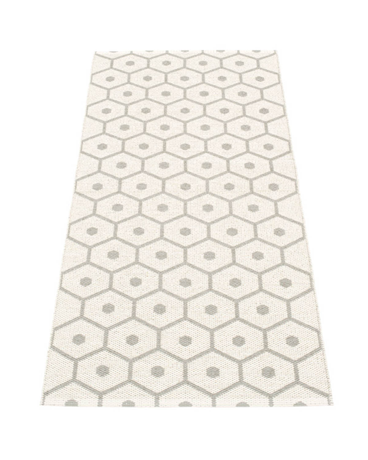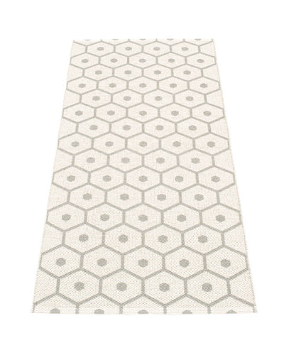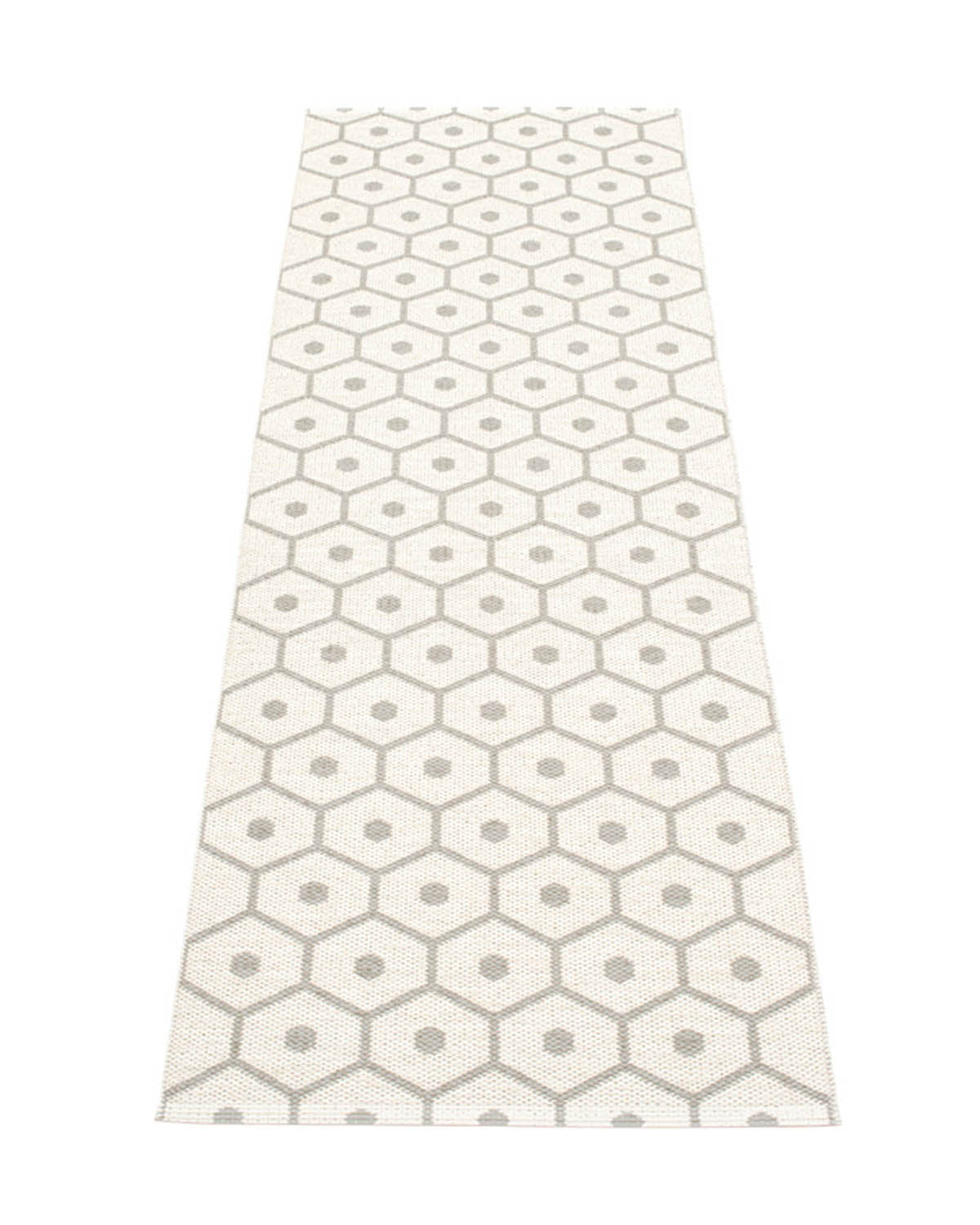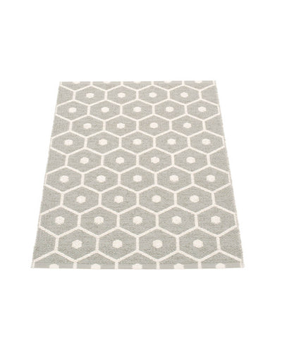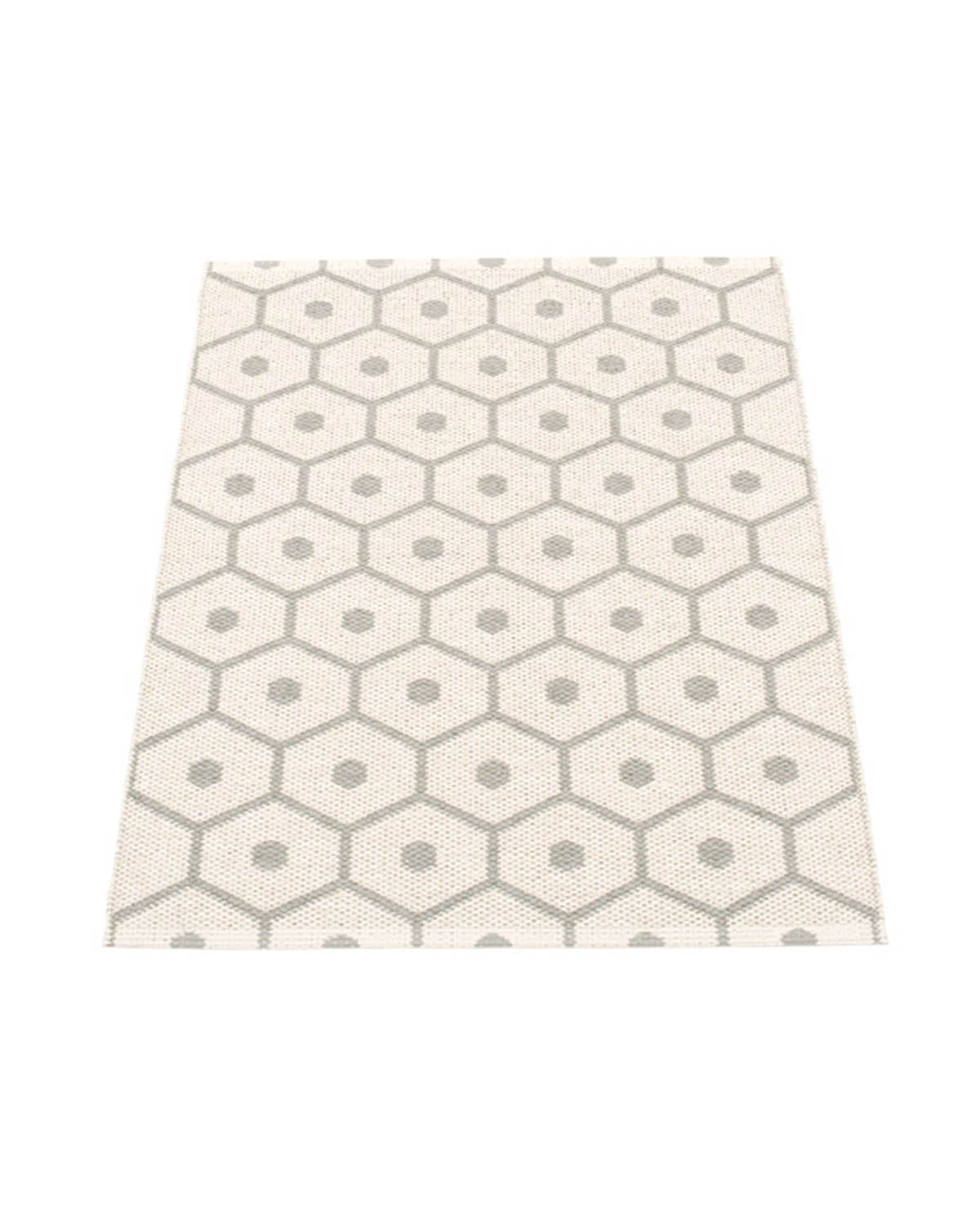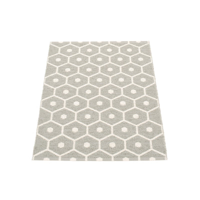 The Pappelina Rugs are woven on a traditional loom using wooden shuttles. For indoor or outdoor use, the rugs are reversible, machine-washable, and made from Swedish-manufactured certified PVC. Each rug features reinforced, welded edges for strength and durability.