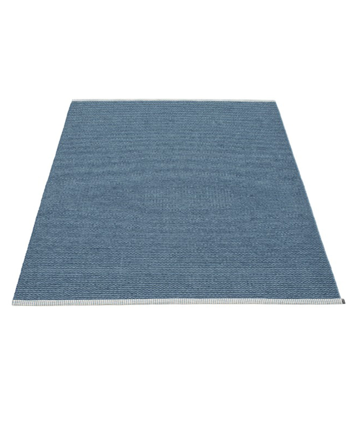 The MONO Rugs are woven on a traditional loom using wooden shuttles. For indoor or outdoor use, the rugs are machine-washable and made from Swedish-manufactured certified PVC. Each rug features reinforced, welded edges for strength and durability.