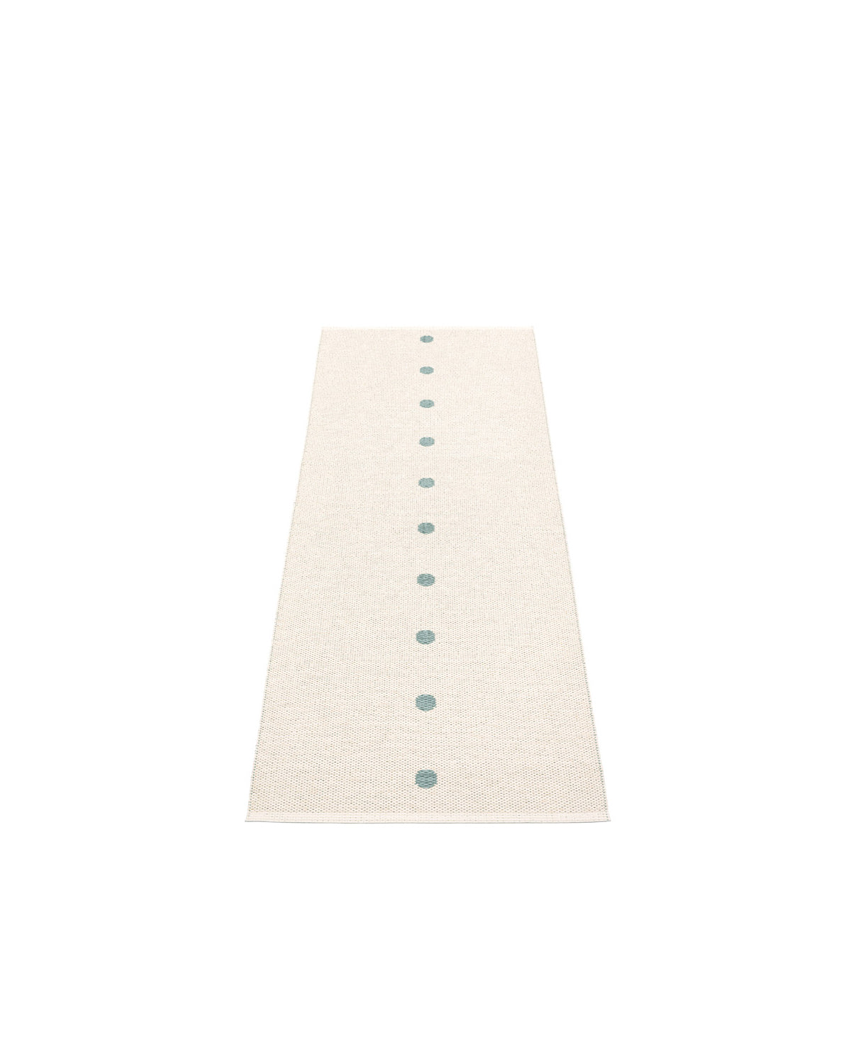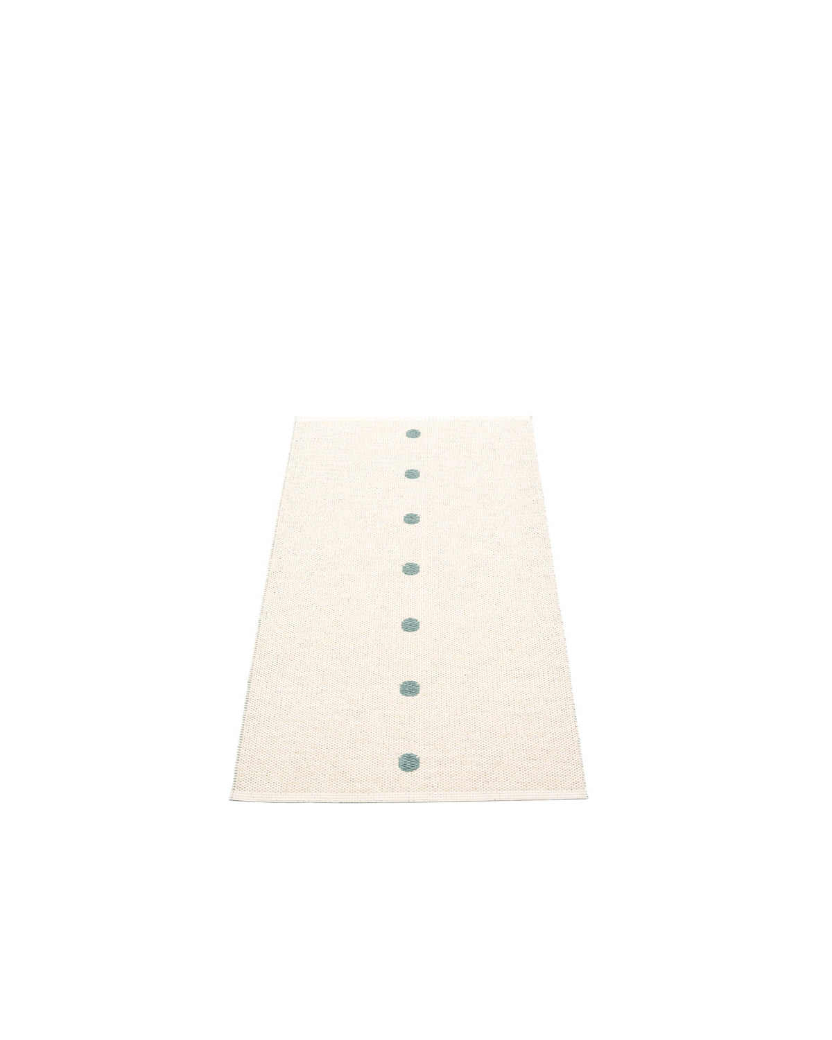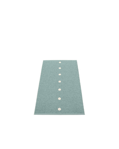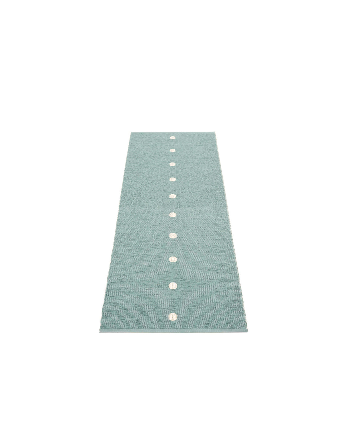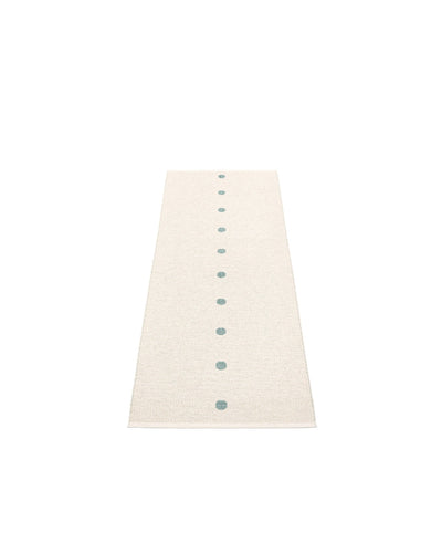 The PEG Rugs are woven on a traditional loom using wooden shuttles. For indoor or outdoor use, the rugs are reversible, machine-washable, and made from Swedish-manufactured certified PVC. Each rug features reinforced, welded edges for strength and durability.