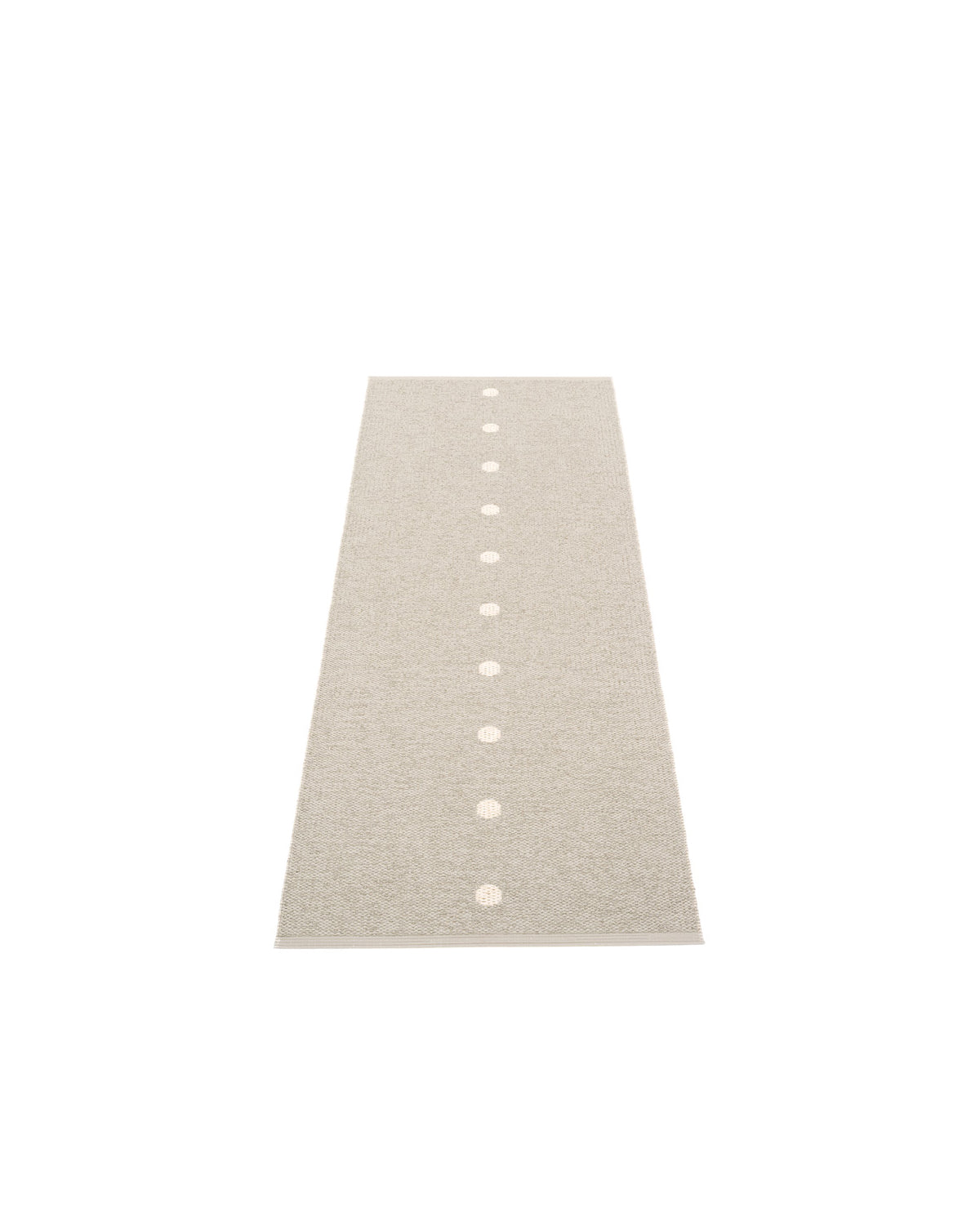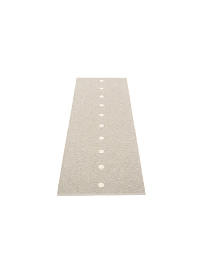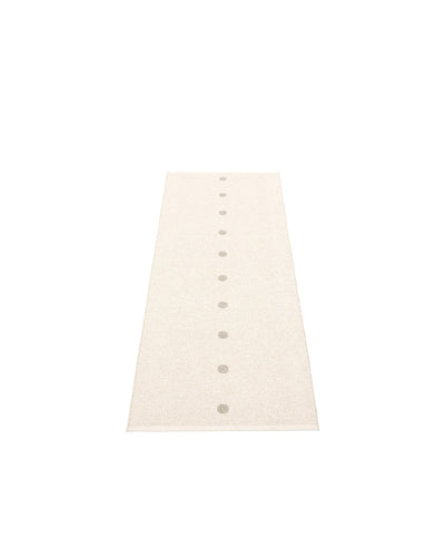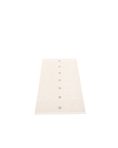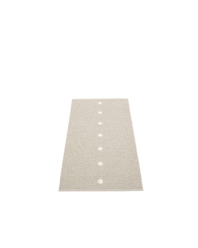 The PEG Rugs are woven on a traditional loom using wooden shuttles. For indoor or outdoor use, the rugs are reversible, machine-washable, and made from Swedish-manufactured certified PVC. Each rug features reinforced, welded edges for strength and durability.