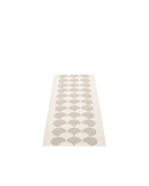 The POPPY Rugs are woven on a traditional loom using wooden shuttles. For indoor or outdoor use, the rugs are machine-washable and made from Swedish-manufactured certified PVC. Each rug features reinforced, welded edges for strength and durability.