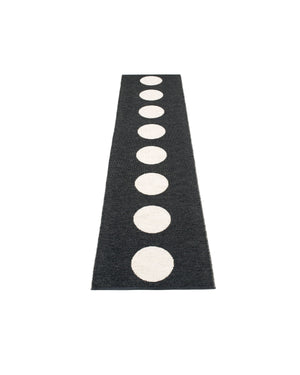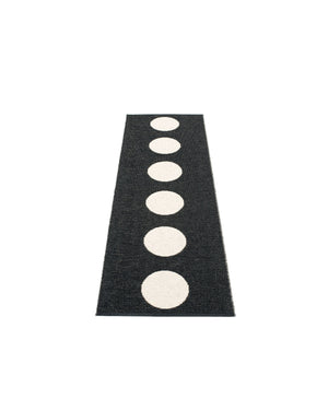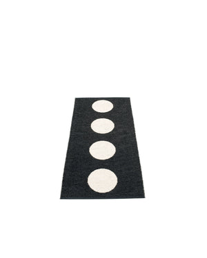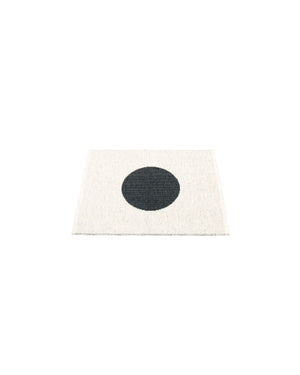 The VERA Rugs are woven on a traditional loom using wooden shuttles. For indoor or outdoor use, the rugs are reversible, machine-washable, and made from Swedish-manufactured certified PVC. Each rug features reinforced, welded edges for strength and durability.