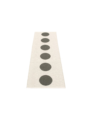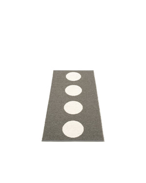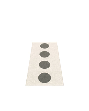 The VERA Rugs are woven on a traditional loom using wooden shuttles. For indoor or outdoor use, the rugs are reversible, machine-washable, and made from Swedish-manufactured certified PVC. Each rug features reinforced, welded edges for strength and durability.