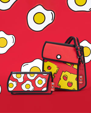 The Pop Art Cheese Shoulder Bag is an eye catching take on your everyday bags and accessories. The Pop Art Cheese Shoulder Bag is a 2D-looking bag that unzips to become a real 3D bag. The brand JumpFromPaper plays with high design graphics and illustrations to create real-world bags that literally look as if they "jumped from paper."