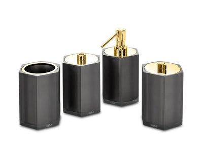 This soap dispenser is part of the Hexa collection. The hexagon as the main shape adds angular dimensions to the set.